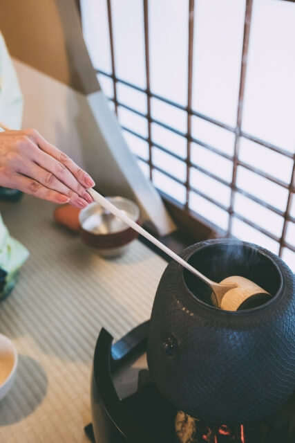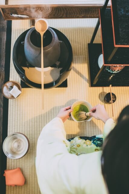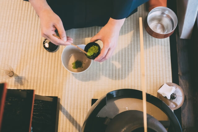 中国から伝わった「喫茶法」を、日本独自の方法で、湯を沸かし、茶を点(た)て、茶を振る舞う行為とした伝統的な文化。